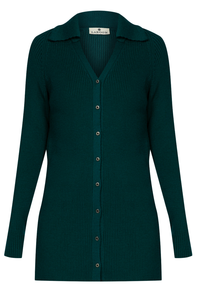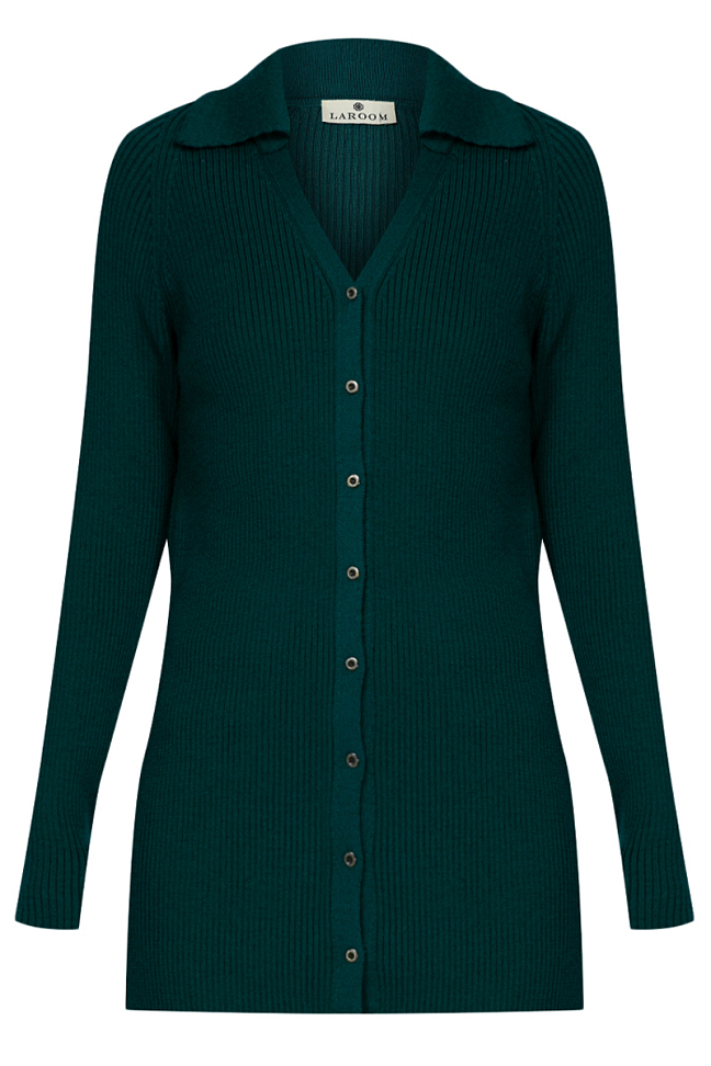 Laroom cardigan, AW22/23 collection. Composition: 50% wool, 50% acrylic. Model measurements: 174/83/60/88, wears size XS/S.