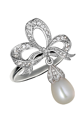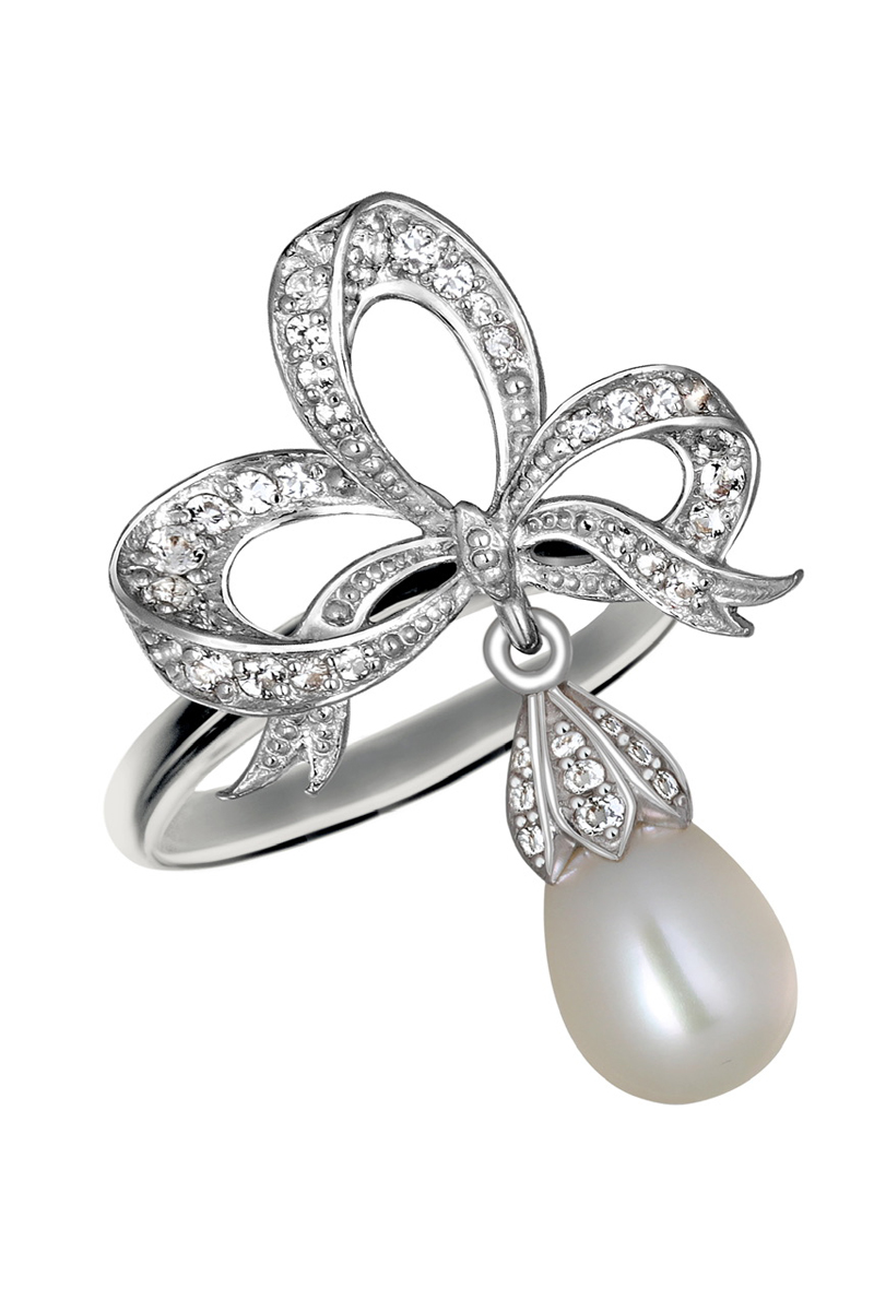 Кольцо "Бантик" российского дизайнера Петра Аксенова. Коллекция Весна-Лето 2022. Состав: стерлинговое серебро, бесцветные топацы, жемчуг. Уважаемые покупатели, возврат данного изделия возможен только в момент примерки курьеру при доставке. Оплаченный товар обмену и возврату не подлежит. Срок изготовления 7-10 дней
