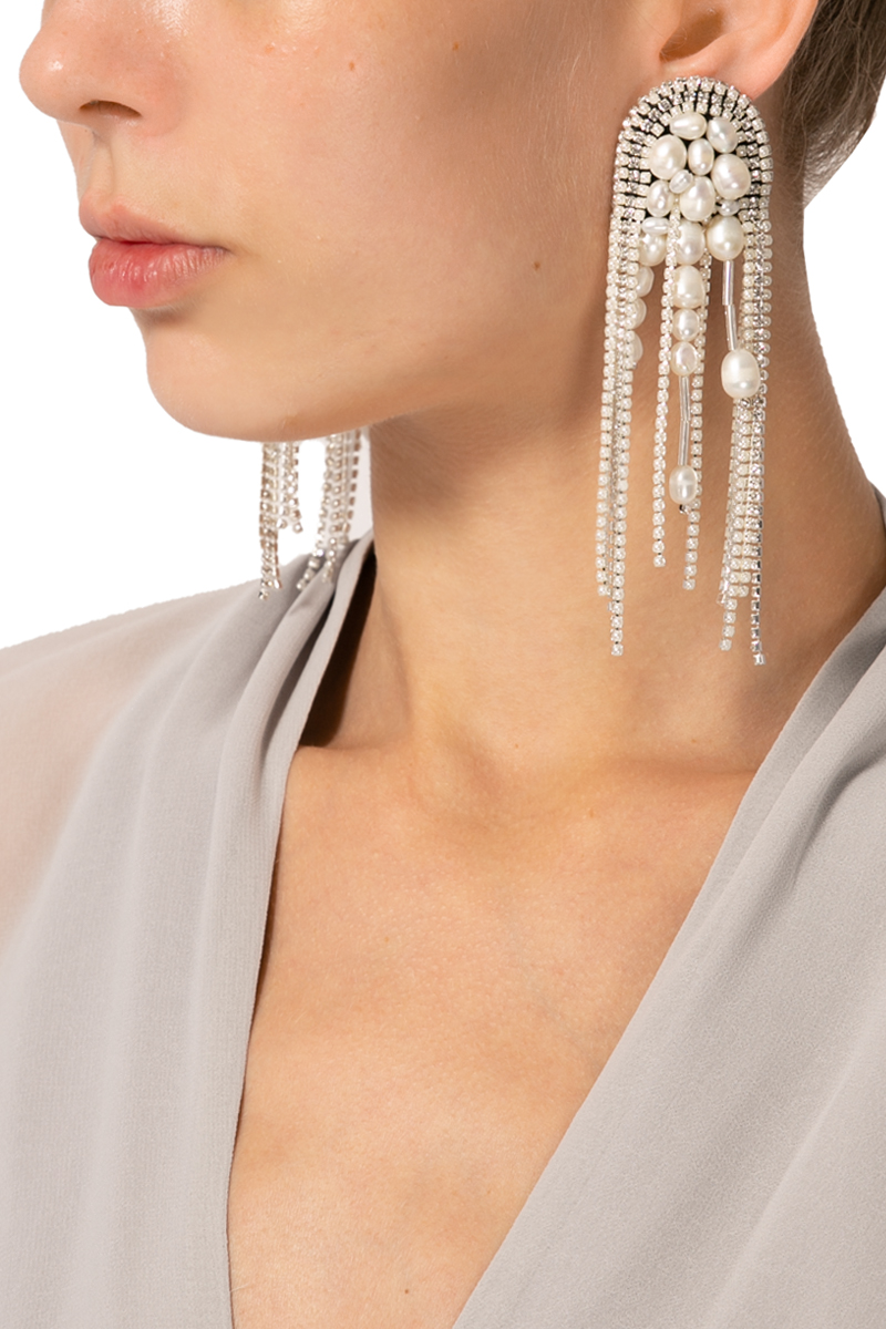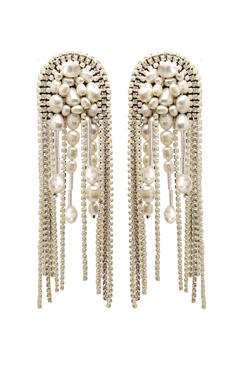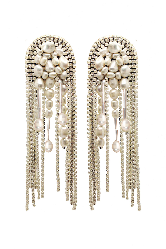 LA FAMILY clip-on earrings, AW21/22 collection. Composition: rhinestone ribbon, pearls. Dear customers, this product could be returned only at the moment of its delivery by courier (for the try-on session). The already paid-for item is not subject to exchange or return.