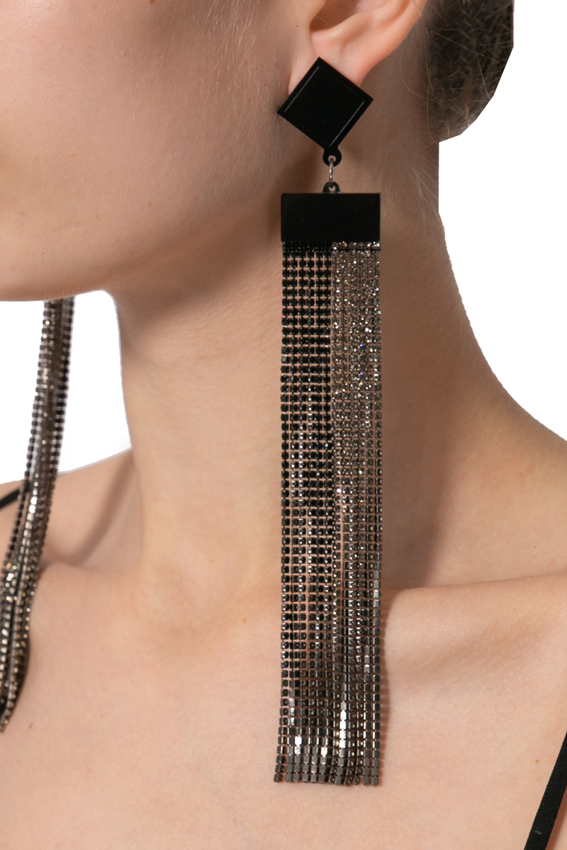 Серьги российского дизайнера LA FAMILY, коллекция Зима 2021/2022. Состав: органическое стекло, стразовая лента. Уважаемые покупатели, возврат данного изделия возможен только в момент примерки курьеру при доставке. Оплаченный товар обмену и возврату не подлежит.