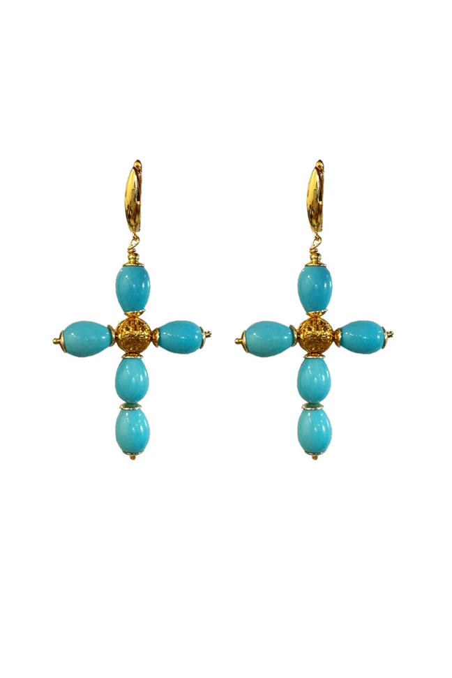 Серьги кресты российского дизайнера LA FAMILY. Состав: керамика, латунь. Цвет: голубой. Уважаемые покупатели, возврат данного изделия возможен только в момент примерки курьеру при доставке. Оплаченный товар обмену и возврату не подлежит.