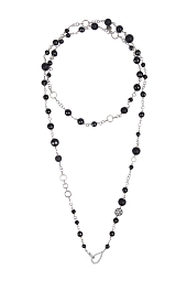 Колье российского дизайнера SOLNYSHKO MIRA, коллекция Весна-Лето 2023. Состав: ювелирный сплав, родиевое покрытие, натуральный натуральный самоцвет - оникс, цирконы. Параметры изделия: длина 190 см. Уважаемые покупатели, возврат данного изделия возможен только в момент примерки курьеру при доставке. Оплаченный товар обмену и возврату не подлежит.