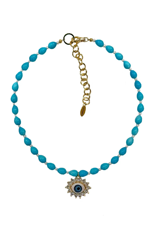 Колье с подвеской российского дизайнера LA FAMILY. Состав: керамика, цирконы, жемчуг майорка. Цвет: голубой. Уважаемые покупатели, возврат данного изделия возможен только в момент примерки курьеру при доставке. Оплаченный товар обмену и возврату не подлежит.