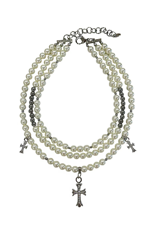 Колье российского дизайнера LA FAMILY. Состав: жемчуг майорка, гематит, ювелирный сплав. Цвет: белый. Уважаемые покупатели, возврат данного изделия возможен только в момент примерки курьеру при доставке. Оплаченный товар обмену и возврату не подлежит.